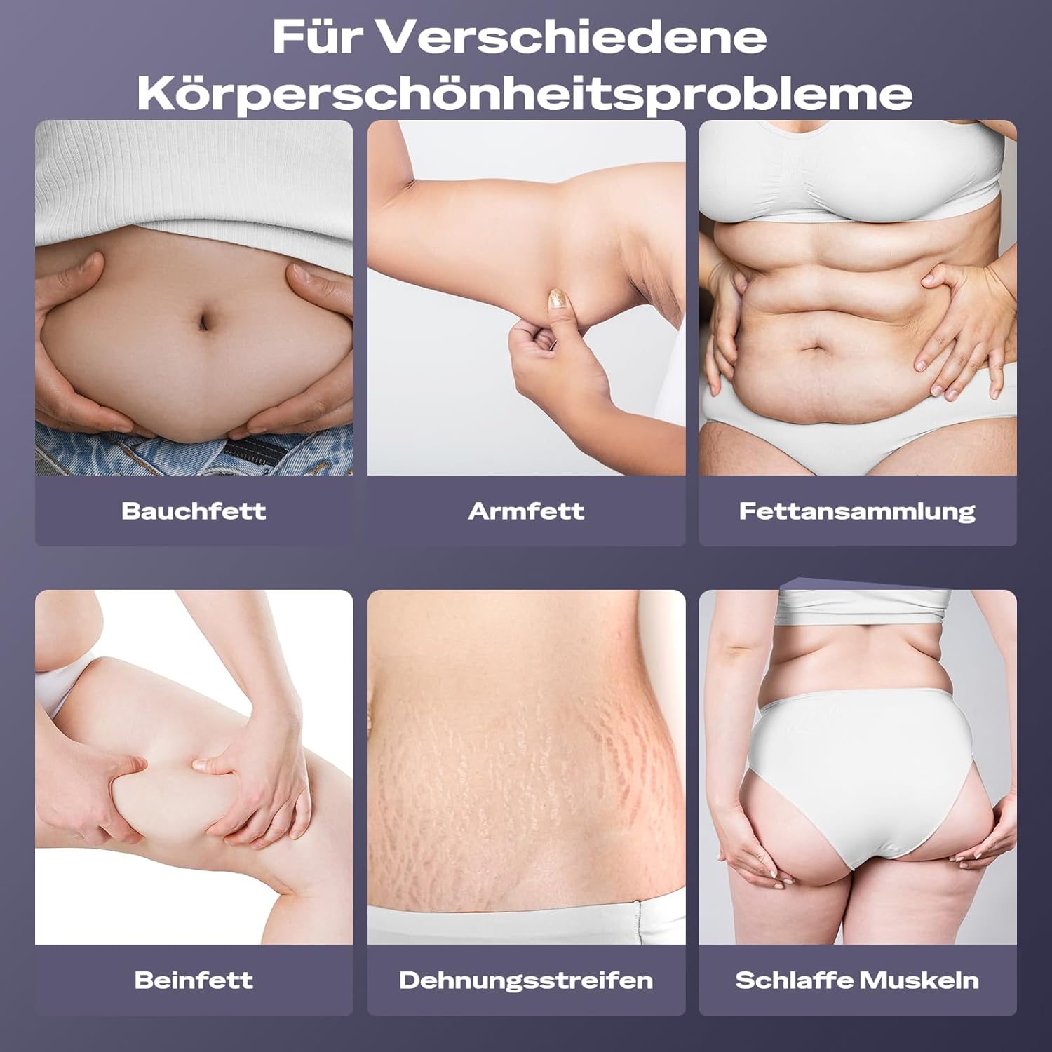 - Anwendungsbereiche: Bauch, Taille, Po, Oberschenkel, Arme, Rücken
