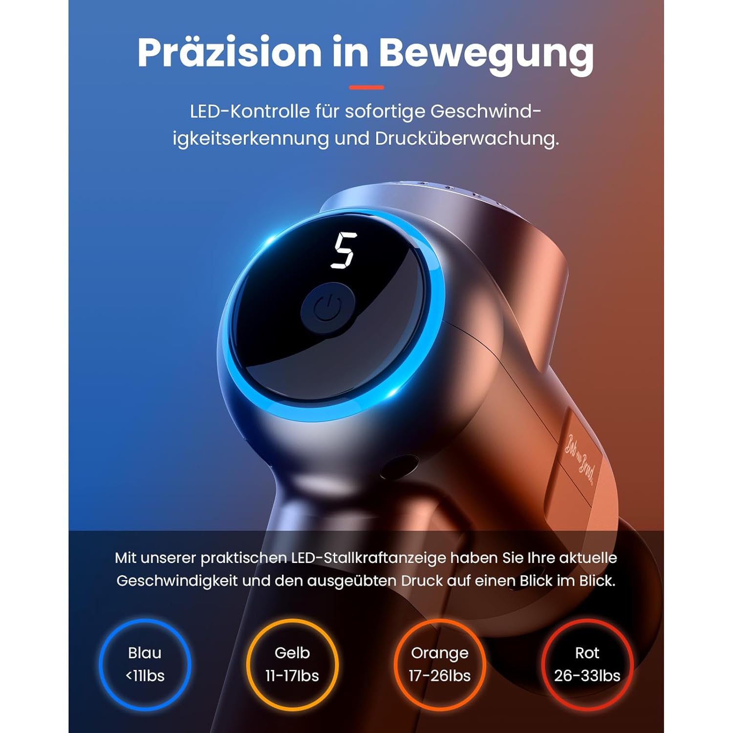 - Professionelle Tiefengewebsmassage mit 10 mm Amplitude und 44 lbs Schlagkraft