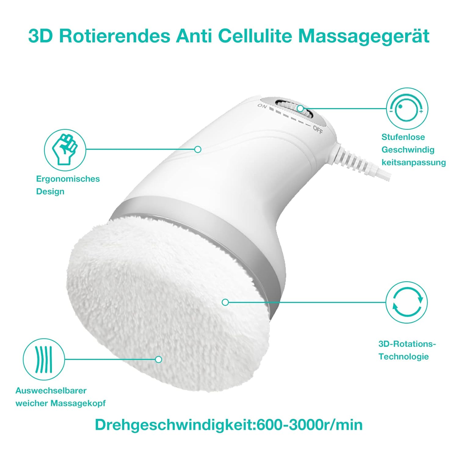 - Leistungsstarker elektrischer Cellulite-Massager mit 600–3000 U/min