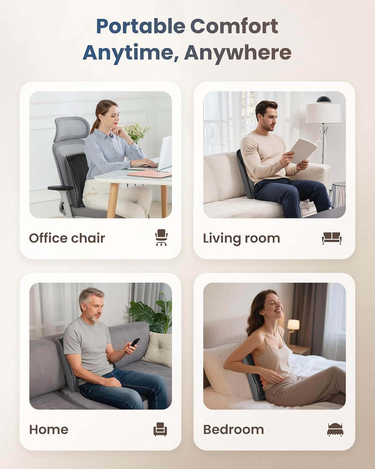 Die integrierte Wärmefunktion des COMFIER Massagers ist ein wahres Highlight für Ihre tägliche Entspannung. Zwei separate Heizzonen im Nacken- und Rückenbereich geben gleichzeitig sanfte, durchblutungsfördernde Wärme ab, die tief in die Muskulatur eindringt. Die Wärme hilft, Verspannungen zu lösen, die Muskeln zu lockern und Schmerzen zu lindern – ein echter Wohlfühlfaktor, besonders an kalten Tagen oder bei chronischen Verspannungen.
