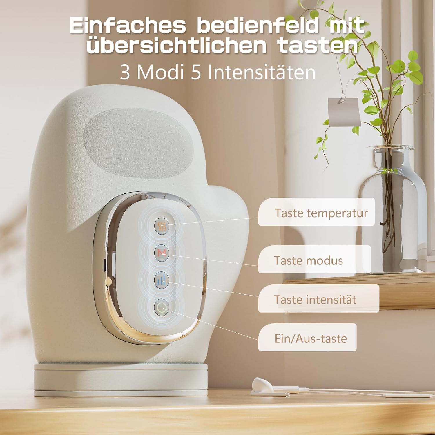 • Massageprogramme: 3 (Sanft, Intensiv, Pulsierend)