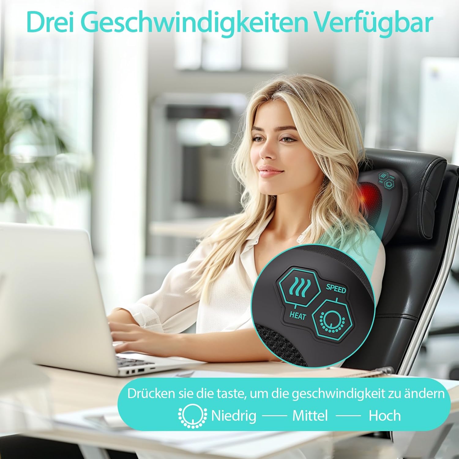 Shiatsu Massagekissen mit 8-Knoten-Massage, 3 Geschwindigkeiten, für Nacken, Rücken, Auto