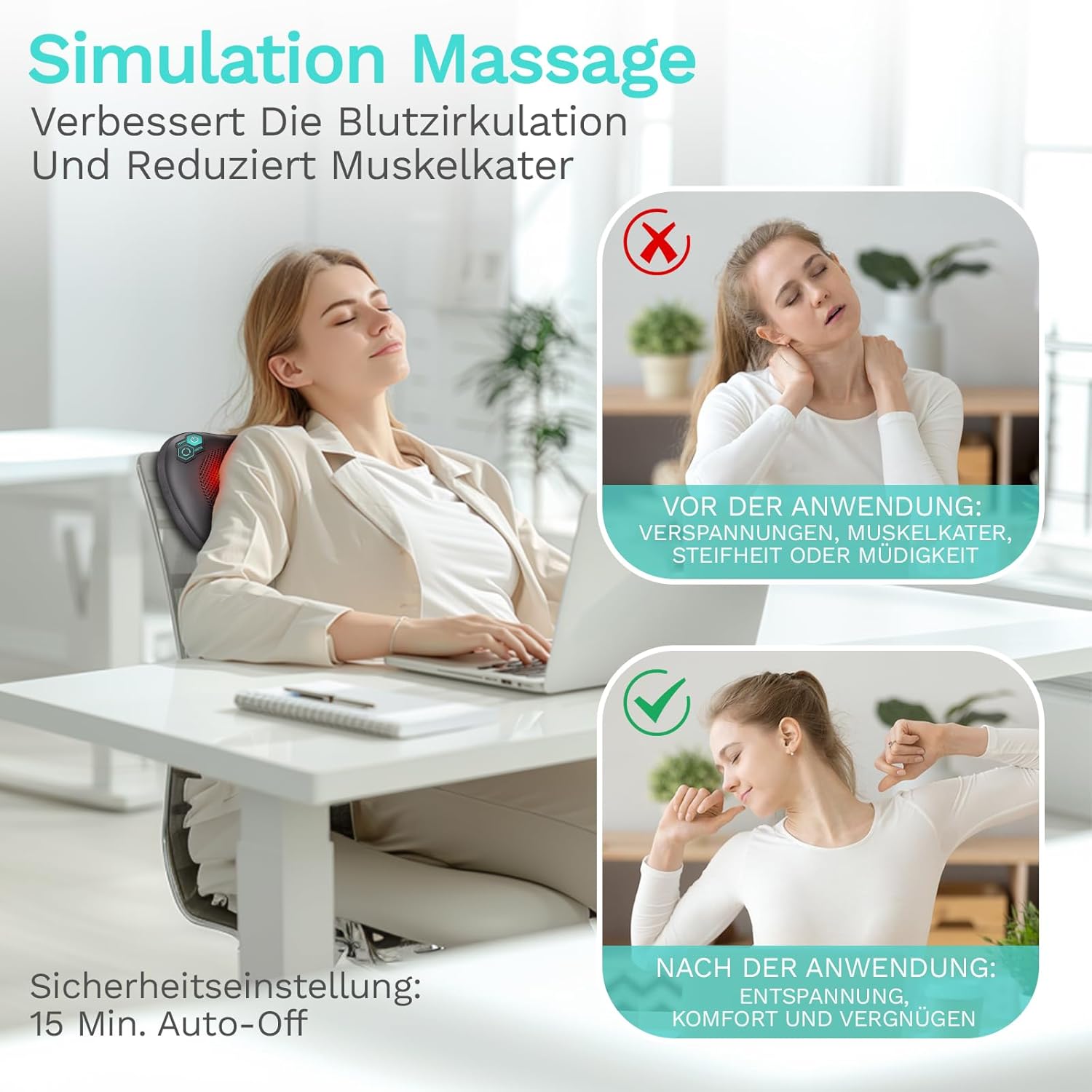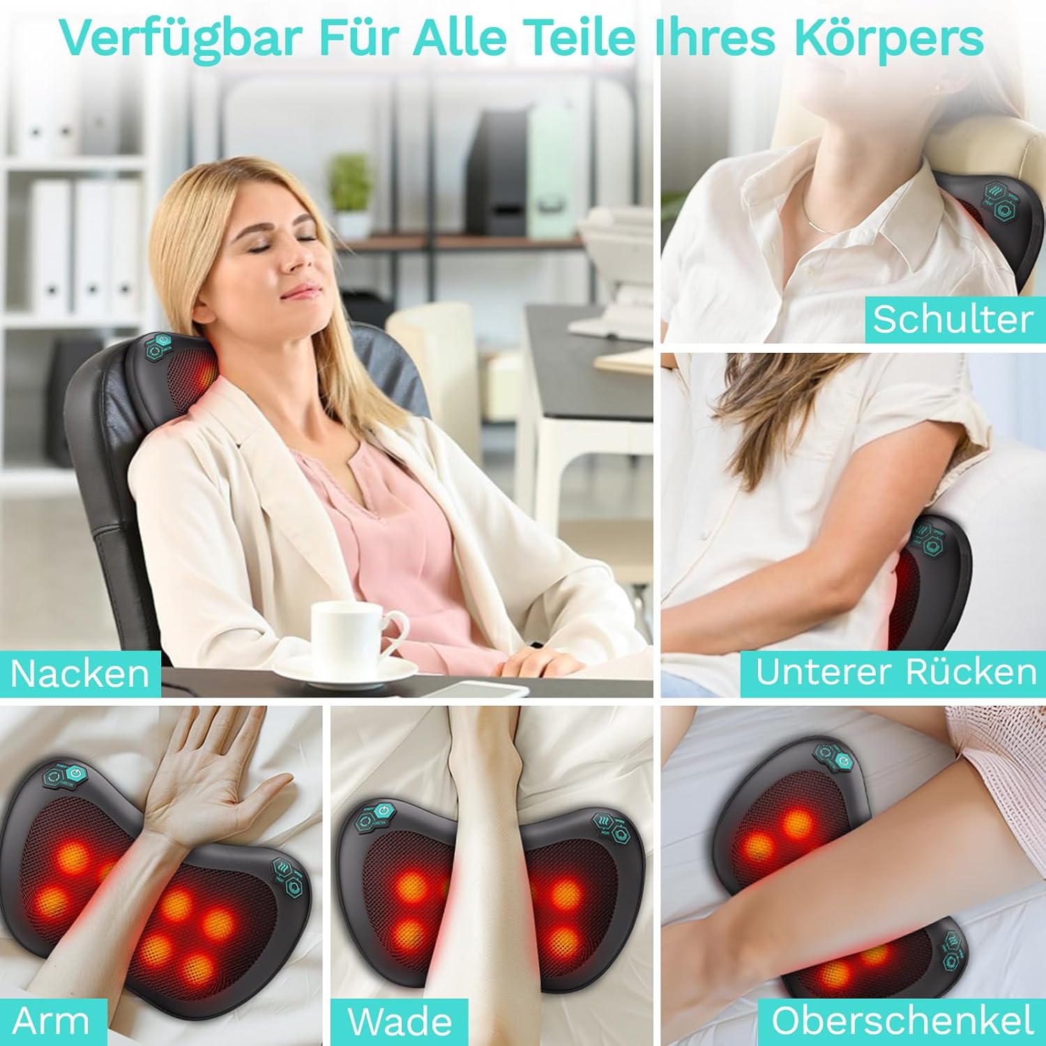 • 8 präzise positionierte Shiatsu-Massageknoten für tiefe Muskelentspannung