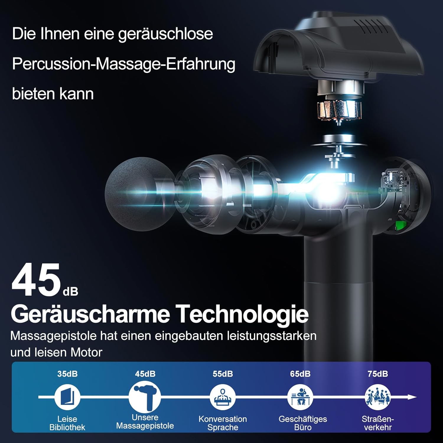 Ein häufiges Problem herkömmlicher Massagepistolen ist der hohe Geräuschpegel, der die Entspannung stören kann – besonders zu Hause, im Büro oder im Hotelzimmer. Die Timiyou Massage Gun löst dieses Problem mit einer innovativen Low-Noise-Technologie, die auf einem speziell entwickelten Brushless-Motor und optimierten Dämpfungselementen basiert.