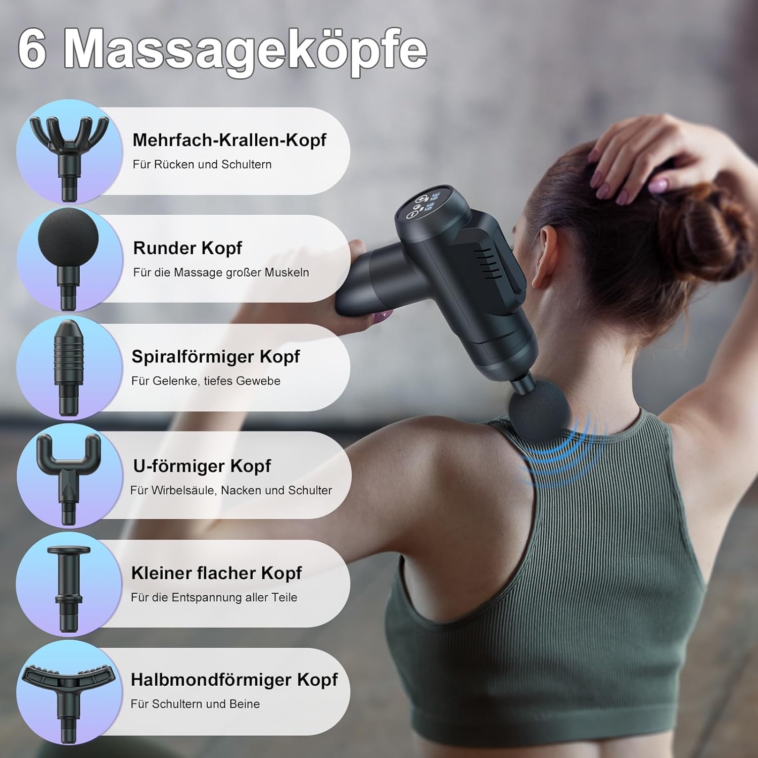 - 6 professionelle Massageaufsätze für alle Muskelgruppen