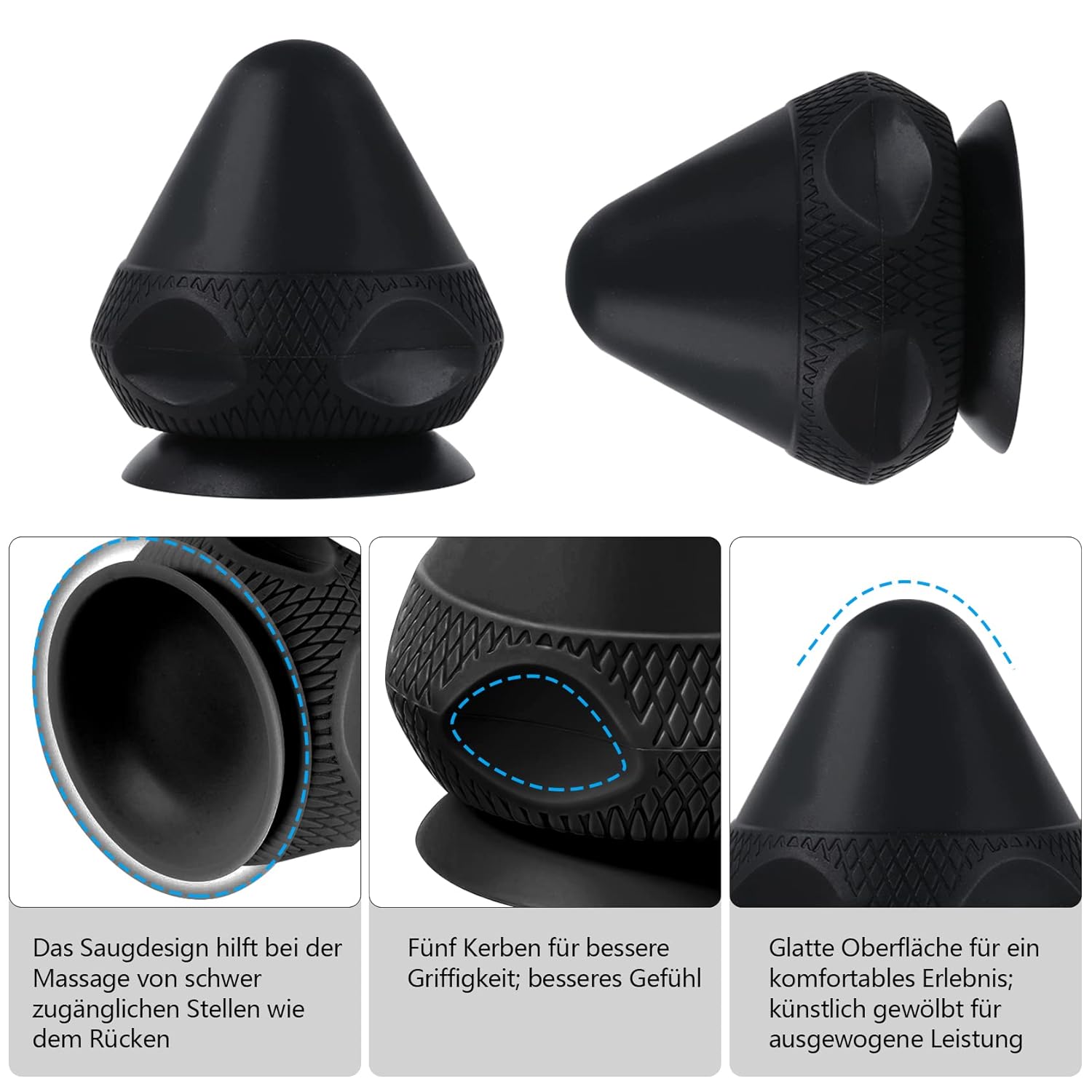 Die runden, abgerundeten Kanten aller Komponenten verhindern Druckstellen oder Hautirritationen. Besonders beim Arbeiten mit Triggerpunkten ist es wichtig, dass der Druck gezielt, aber nie schmerzhaft ist. Die Formen dieses Sets sind so gestaltet, dass sie sanft in die Muskulatur eindringen, ohne die Haut zu quetschen oder zu ritzen. Auch bei längerer Anwendung bleibt das Hautgefühl angenehm – kein klebriges oder feuchtes Gefühl, selbst nach intensiver Nutzung.
