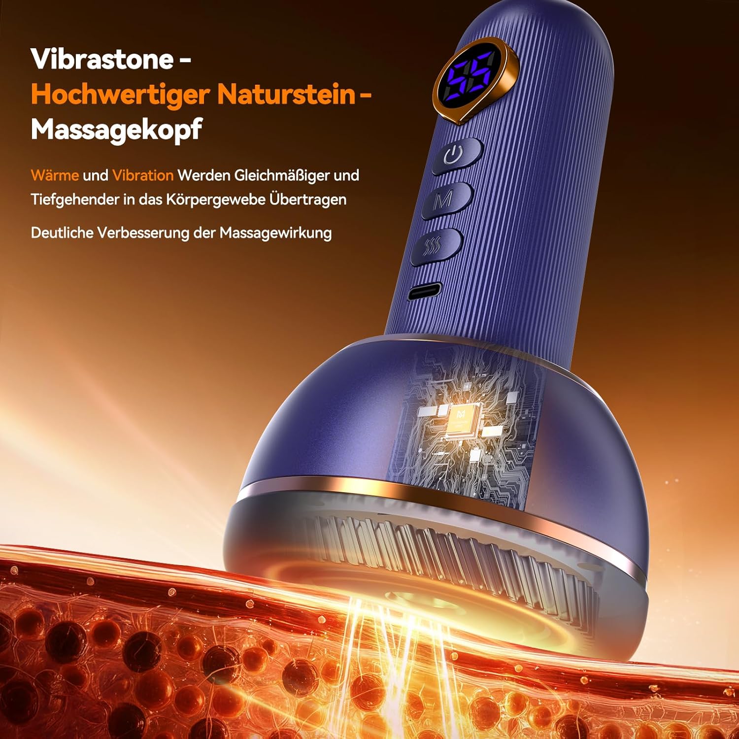 Nutzen Sie die Kraft der Vibration, die Wärme der Berührung und die Wirkung der modernen Gua-Technologie, um Ihren Körper wieder spüren zu lassen, was echte Erholung bedeutet. Der Vibrastone 6.0 – für ein Leben in Balance, Bewegung und Vitalität.